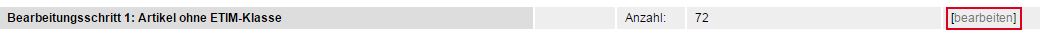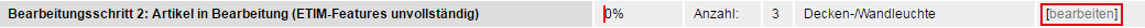 Bearbeitungsschritt 2: Artikel in BearbeitungEin Klick auf den [bearbeiten] Link von Bearbeitungsschritt 2 führt zu der Ansicht, in der die ETIM-Merkmale gepflegt werden.